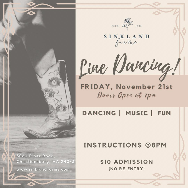 Sinkland Farms presents Line Dancing at Sinkland on Friday, November 21, 2025.
