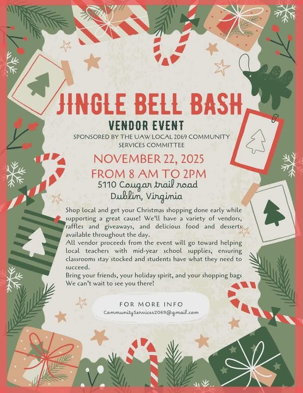 UAW Local 2069 Union Hall presents the Jingle Bell Bash on Saturday, November 22, 2025.