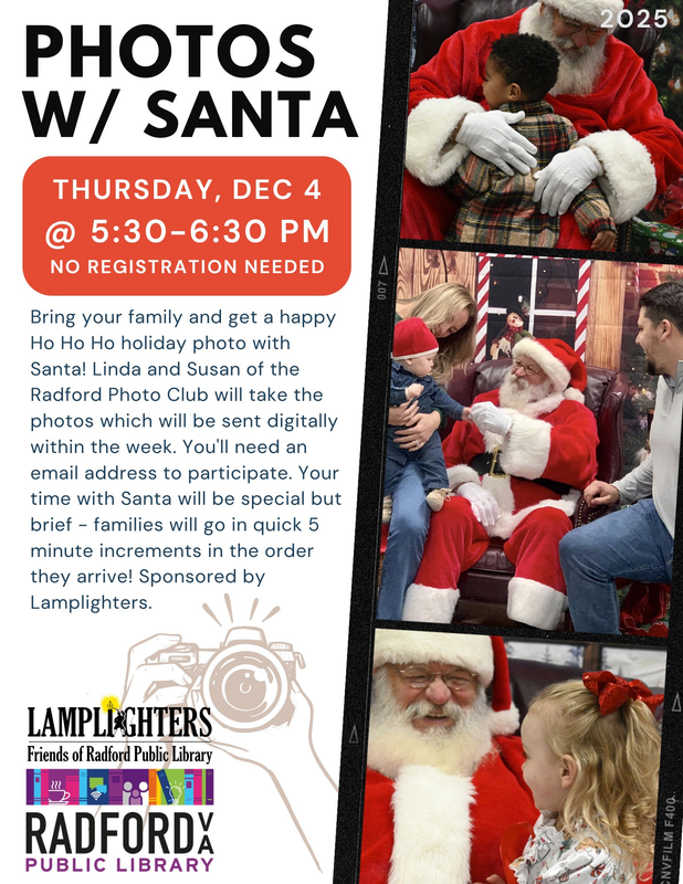 The Radford Public Library presents the Annual Photos with Santa event on Thursday, December 4, 2025.