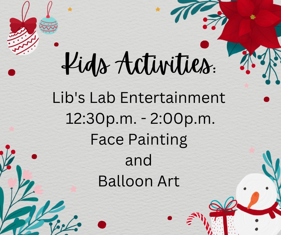 Stop by for a fun-filled afternoon featuring Lib's Lab Entertainment offering complimentary face painting and balloon art.