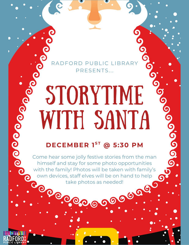 The Radford Public Library presents Storytime with Santa on Monday, December 1, 2025.