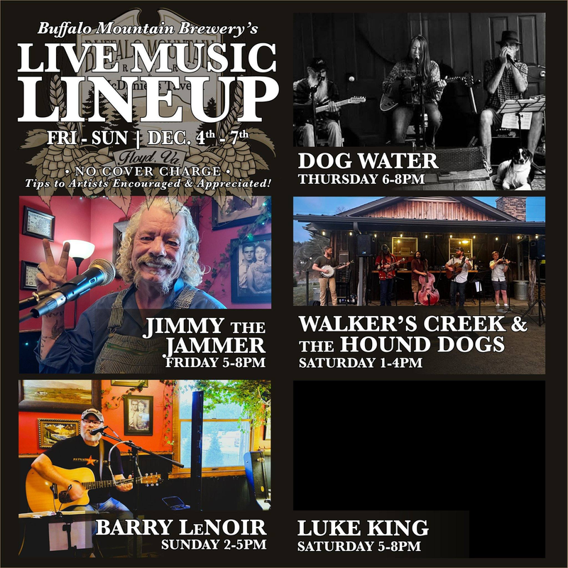 Buffalo Mountain Brewery presents Jimmy The Jammer in concert on Friday, December 5, 2025.