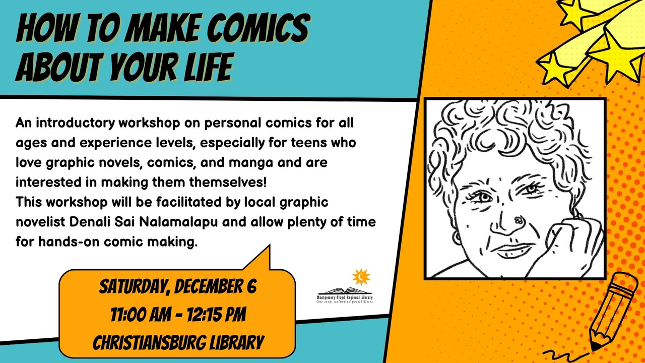 The Christiansburg Library presents the program "How to Make Comics About Your Life" on Saturday, December 6, 2025.