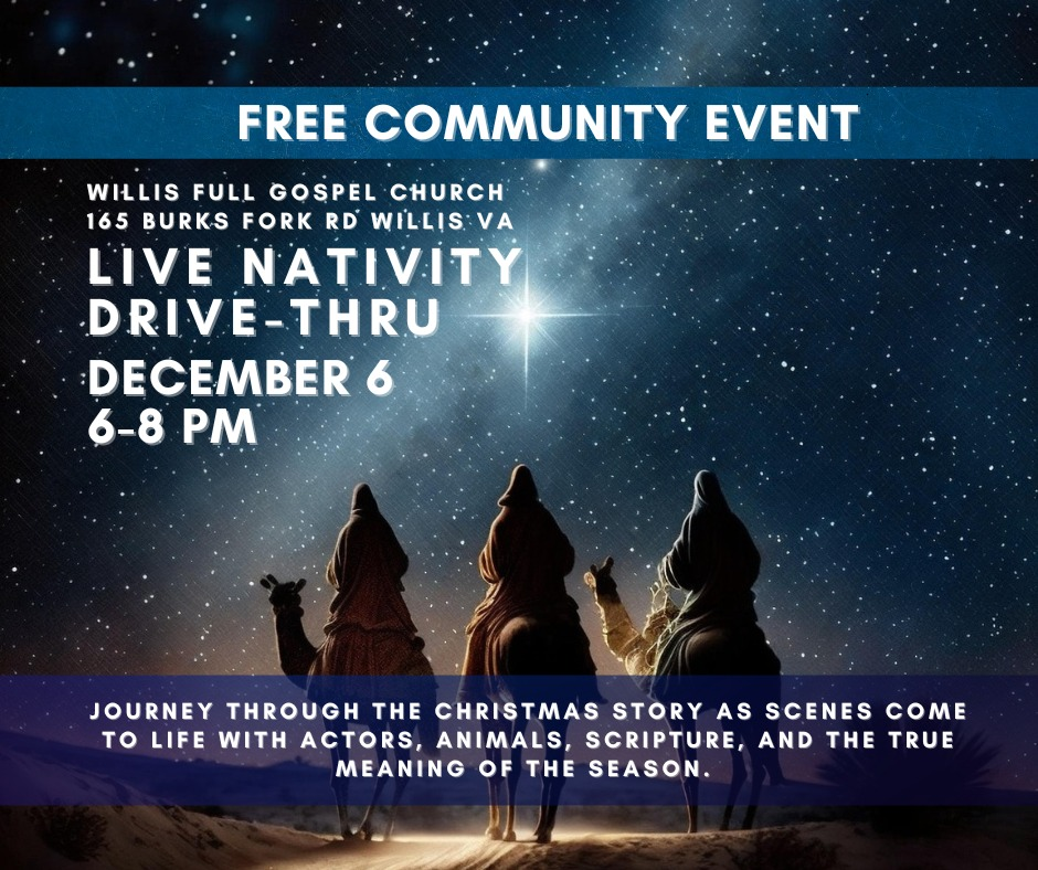 Willis Full Gospel Church presents their Annual Live Nativity Drive-Thru on Saturday, December 6, 2025.