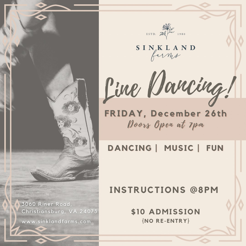 Sinkland Farms presents Line Dancing on Friday, December 26, 2025.