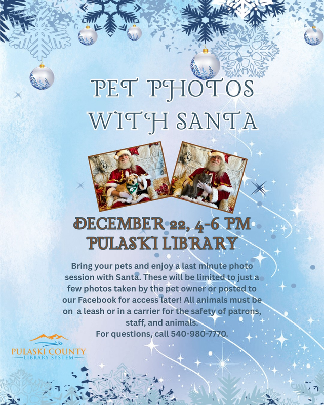 The Pulaski County Library presents Pet Photos with Santa on Monday, December 22, 2025.