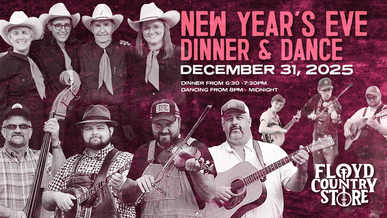 The Floyd Country Store presents their 10th Annual New Year's Dinner & Dance featuring Twin Creeks Stringband, Up Jumped Trouble and Larry Sigmon & The Virginia Girls on Wednesday, December 31, 2025.