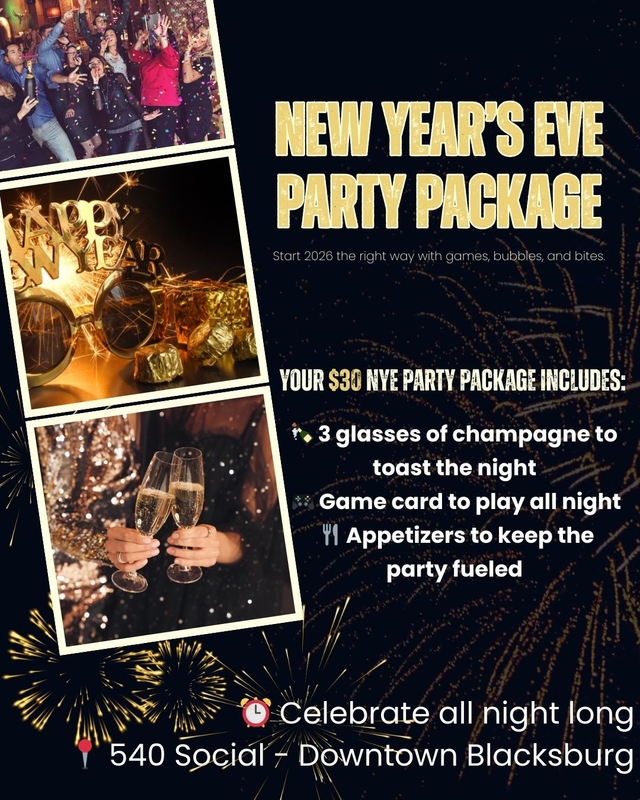 540 Social Blacksburg presents a New Year's Eve Party on Wednesday, December 31, 2025.