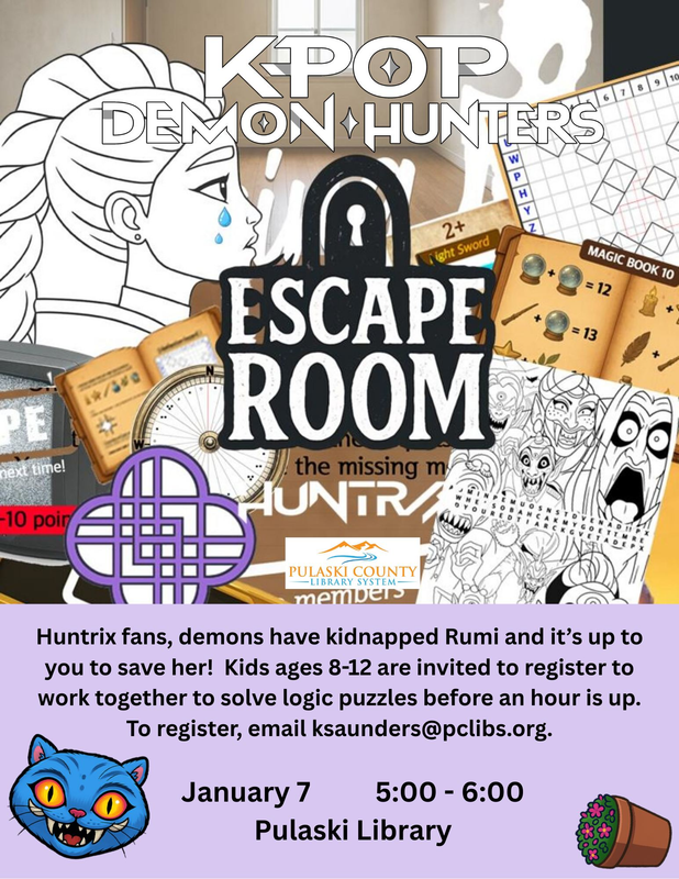 The Pulaski County Library presents a K-Pop Demon Hunter Escape Room on Wednesday, January 7, 2026.