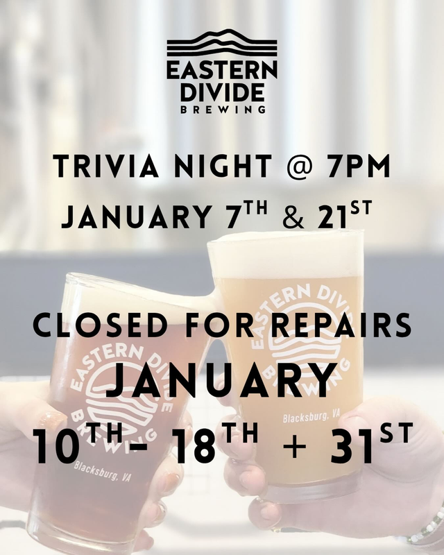 Eastern Divide Brewing presents their Bi-Monthly Trivia Night on Wednesday, January 21, 2026.