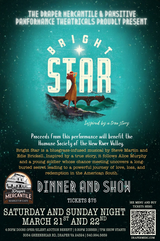 This show is brought to you in partnership with Pawsitive Pawformance Theatricals, a local non-profit performance group. Proceeds from this performance will benefit the Humane Society of the New River Valley.