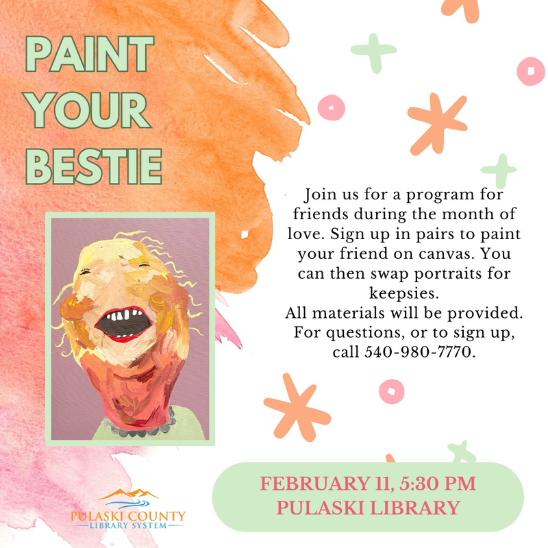 The Pulaski County Library presents the art program "Paint Your Bestie" on Wednesday, February 11, 2026.
