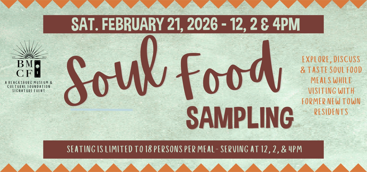 The Blacksburg Museum and Cultural Foundation presents the 9th Annual Soul Food Sampling at Historic St. Luke and Odd Fellows Hall on Saturday, February 21, 2026 with three time slots at 12:00 PM, 2:00 PM and 4:00 PM.