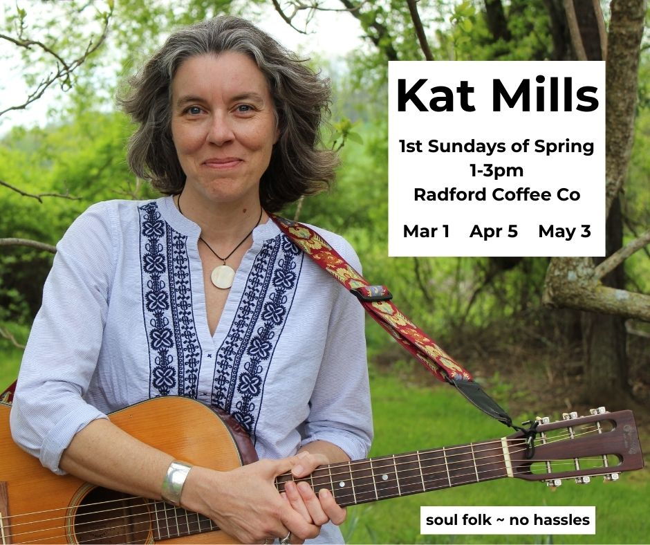 Radford Coffee Company presents First Sundays with Kat Mills in concert on Sunday, April 5, 2026.