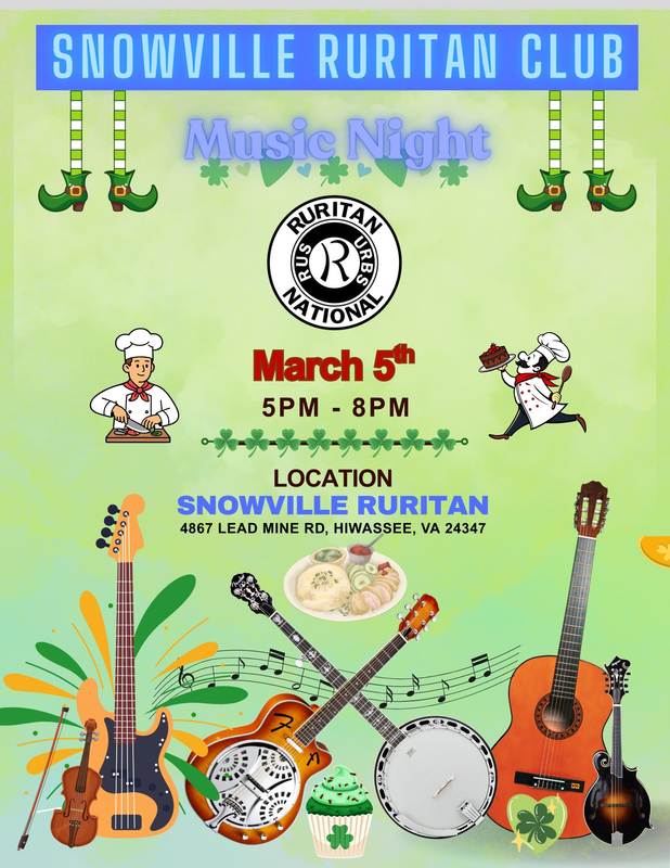 The Snowville Ruritan Club presents their March Bluegrass Jam on Thursday, March 5, 2026.