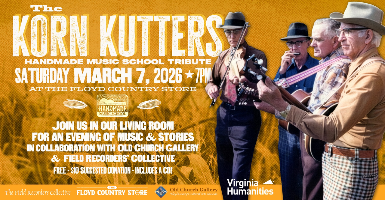The Handmade Music School in collaboration with Old Church Gallery and Field Recorders’ Collective presents a Tribute to the Korn Kutters on Saturday, March 7, 2026 at The Floyd Country Store.