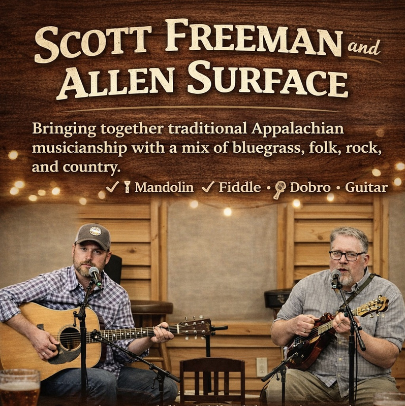 Great Wilderness Brewing Company presents Allen Surface and Scott Freeman in concert on Saturday, March 7, 2026.