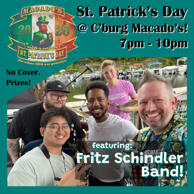 Macado's Christiansburg presents their Annual St. Patrick's Day Party with the Fritz Schlinder Band on Tuesday, March 17, 2026.
