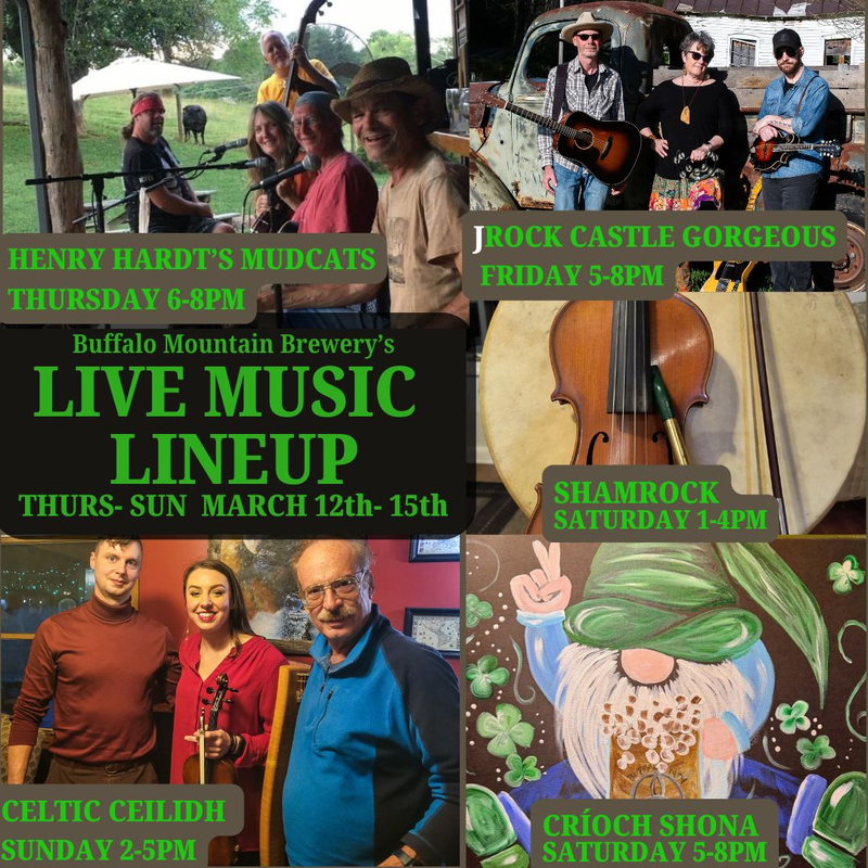 Buffalo Mountain Brewery presents a St. Patrick's Day Celebration with Shamrock and Crioch Shona in concert on Saturday, March 14, 2026.
