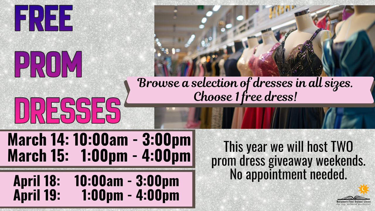 The Meadowbrook Public Library offers Free Prom Dresses for Teens on Saturday, March 14, 2026.