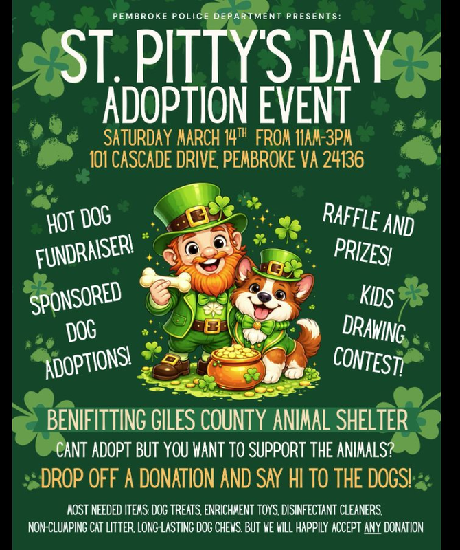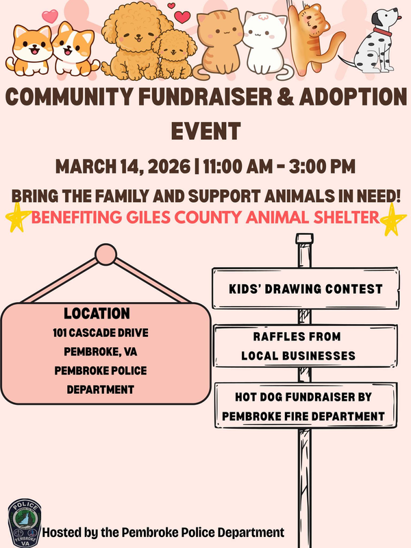 The Pembroke Police Department presents a Community Fundraiser & Adoption Event on Saturday, March 14, 2026.