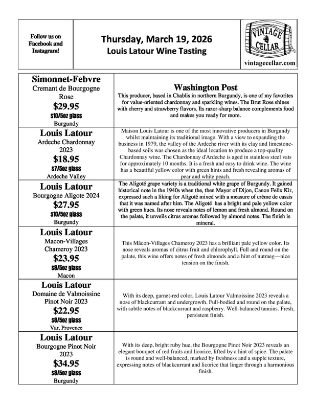 Vintage Cellar presents a Maison Louis Latour Wine Tasting on Thursday, March 19, 2026.